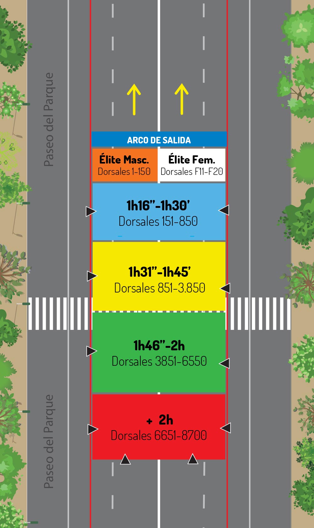 The race start will be organized in waves, beginning at 8:15 a.m., according to the following schedule: